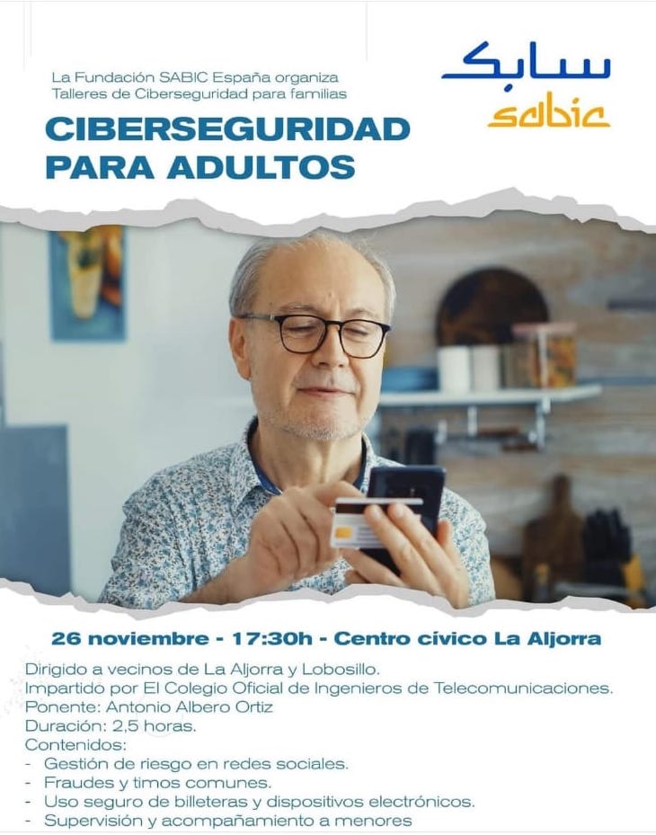 Desde la Asociación de Vecinos queremos dar las gracias a la Fundación #Sabic por el taller de esta tarde en el Centro Cívico. Nos ha venido genial para aprender a evitar estafas, manejar con más seguridad el móvil y no creernos todos los bulos que circulan por ahí.
