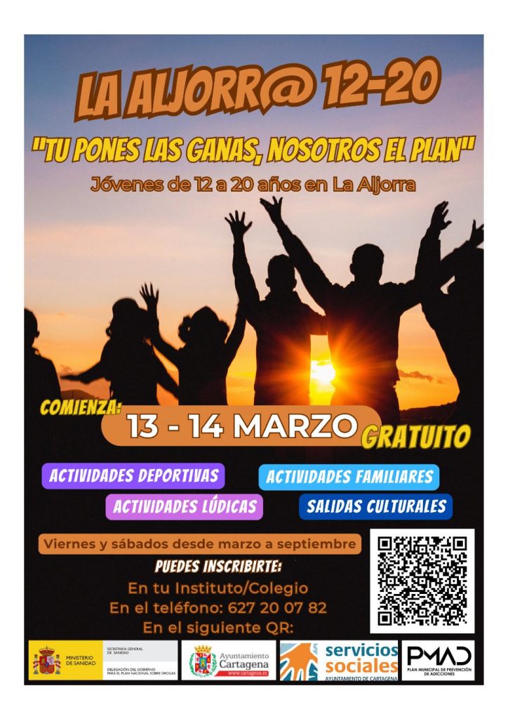 Desde el Ayuntamiento más concretamente desde el Plan Municipal de Prevención de Adicciones se pone en marcha un programa gratuito de actividades culturales, lúdicas, deportivas y familiares dirigido a jóvenes de 12 a 20 años de la pedanía de La Aljorra (Cartagena).